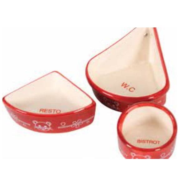 زولكس طقم من 2 وعاء + حمام للحيوانات الصغيرة أحمر – Zolux Set of 2 Bowls + Toilet House for Small Pets Red